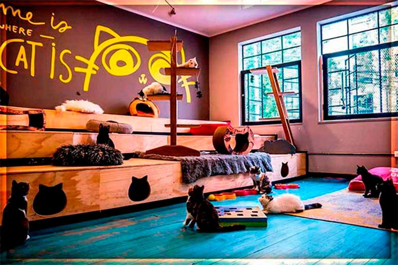 En este café-restaurante es posible disfrutar de un variado menú y vivir una experiencia gatuna. Cuenta con seis ambientes que incluyen el salón principal, la terraza, el cat box, el yoga-to, e incluso hay un espacio agradable para sentarse a leer o trabajar.