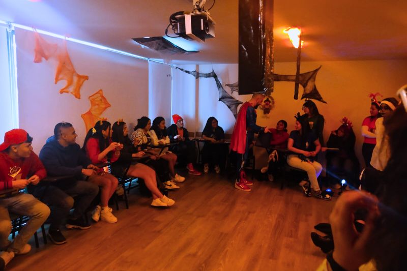 Implementamos una estrategia de experiencias memorables, diseñada para que los estudiantes de inglés en educación continua y pregrado aprendan de manera activa y colaborativa. A través de la codocencia, profesores de clases paralelas se articulan para crear sesiones conjuntas que integran a estudiantes de distintos niveles y potencian el aprendizaje desde actividades culturales, lúdicas e interactivas.