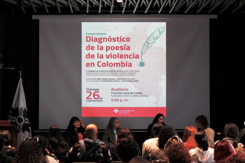¿Existen formas de resignificar el pasado doloroso a través de la palabra? En el conversatorio Diagnóstico de la poesía de la violencia en Colombia, desarrollado en la Universidad Central, las poetas Mery Yolanda Sánchez y Luisa Villa reflexionaron sobre esta pregunta, a partir de sus experiencias al describir los rastros del conflicto armado mediante la palabra poética. Junto a ellas, estuvieron Lizeth Natalia Gutiérrez y Natalia Amparo Niño, estudiantes y participantes del semillero Puntos Cardinales del programa de Creación Literaria, quienes abrieron un diálogo sobre el papel de la poesía en torno a la violencia y el conflicto en Colombia.